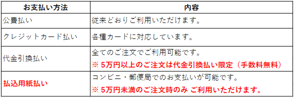※公費払いにつきましては、ご注文金額に関わらずこれまでどおりご利用いただけます。